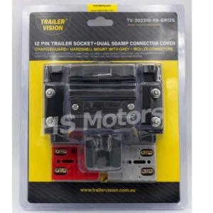 This genuine Trailer Vision dual-connector cover + 12 Pin Flat Socket Kit is designed to house, protect and tidy up two 50A Anderson-style plugs inside one durable, compact enclosure.