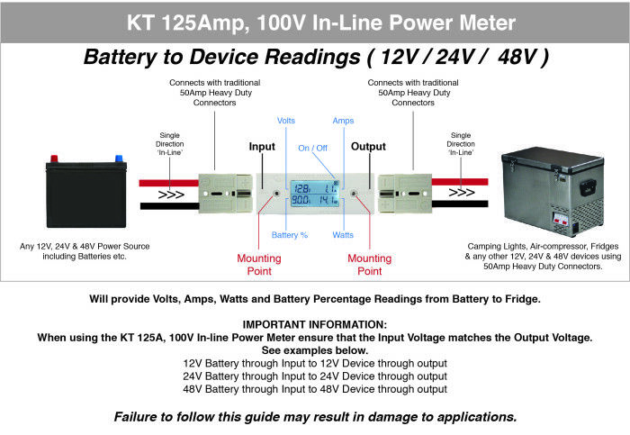 The Innovative KT 100V, 125Amp In-Line Power Meter provides an