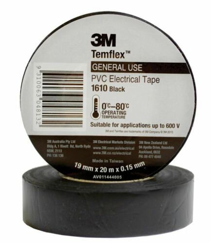 3M Temflex Electrical Tape 1610 is a general purpose vinyl insulating tape resistance to abrasion, moisture, alkalis, acids and varying weather conditions (including sunlight). Temflex Tape 1610 is a polyvinyl chloride (PVC) tape that has high wet dielectric strength, is conformable, and provides excellent mechanical protection with minimal bulk. • Good quality, economical PVC insulating tape with a temperature rating of up to 80ºC • Resistant to varying weather conditions
