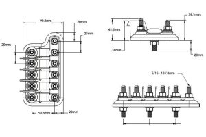 x1 5 WAY M8 STUDS MEGA FUSE (ANM) HOLDER BUSBAR 300A COMBINED CURRENT RATING