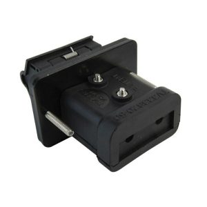 Locking tab for connecting plug to help prevent accidental plug disconnection.