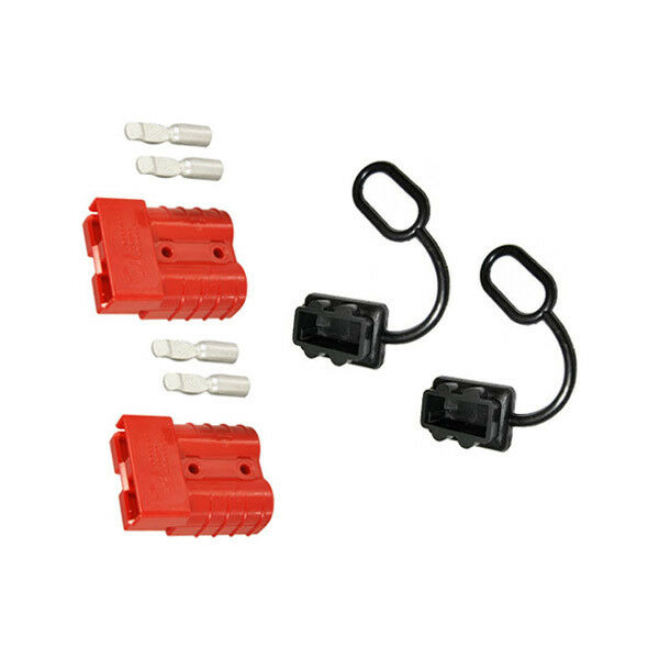 A twin pack of genuine RED 50 amp Anderson Plugs, supplied with covers to prevent dust and