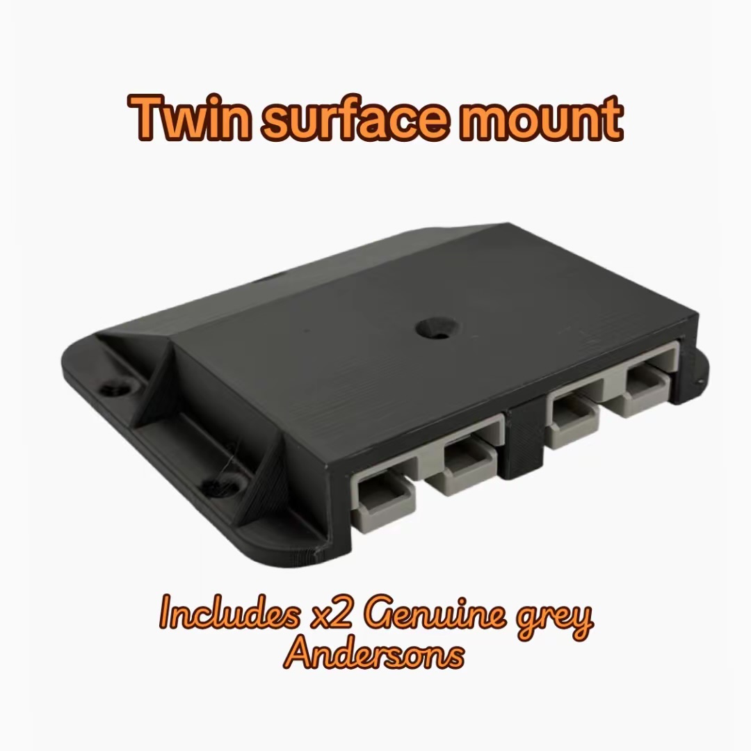 Twin 50 Amp Anderson Plug Surface Mount Bracket inc Mounting bolts (Black) – x2 Genuine Grey Anderson Plugs INC