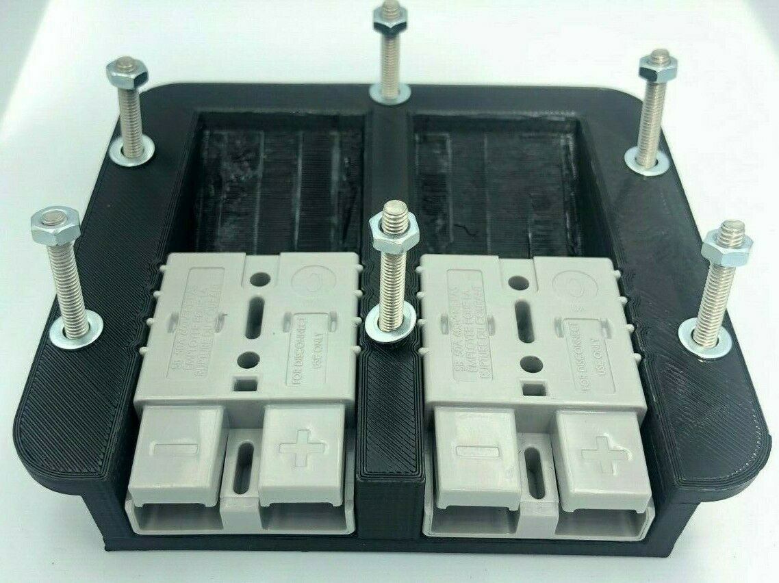 Twin 50 Amp Anderson Plug Surface Mount Bracket inc Mounting bolts (Black) – x1 Genuine Grey & x1 Red Anderson Plugs INC
