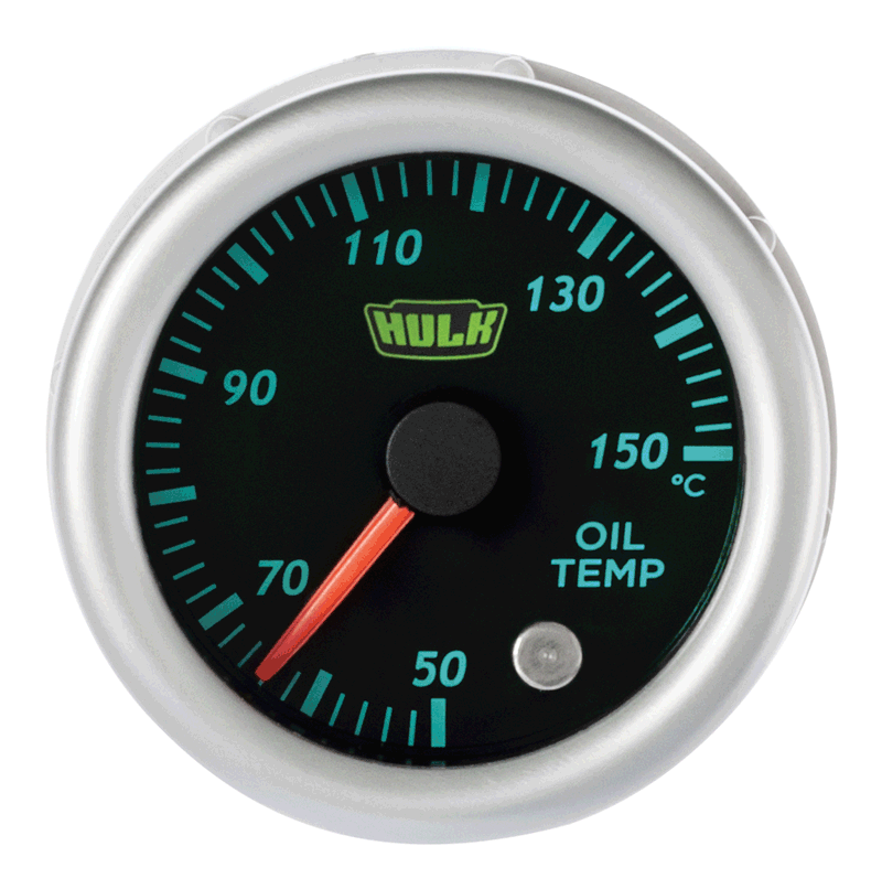 52mm Oil Temperature Gauge 50-150 DEG Sender Unit Included. 10 Illumination Colours Available: Red Green Blue Purple White Amber Aqua Orange Ice Blue Pink