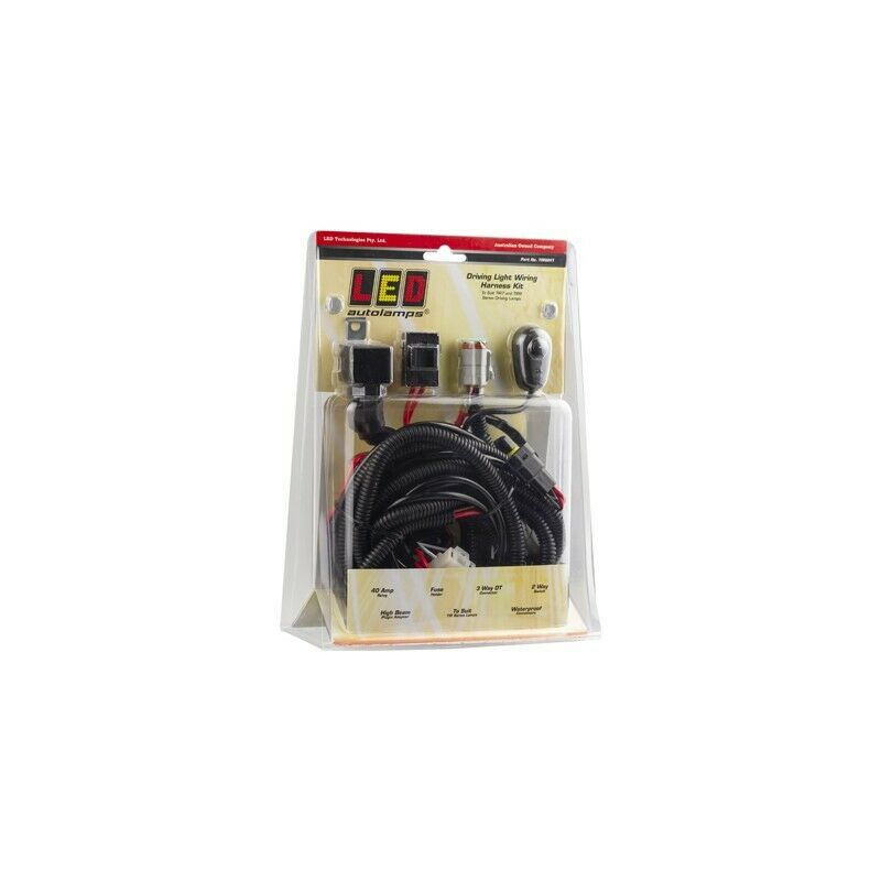 Follow the drawing below to install the harness into vehicle. When routing cables within engine bay, avoid any areas that produce heat which can damage the harness kit. If installed correctly the lamps will comply with wiring requirements for additional lighting on vehicles. For more information please refer to ADR 13/00.