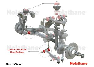 Worn front control arm bushings have a huge influence on vehicle stability, steering precision and braking efficiency. Replace worn bushings to ‘as new’ condition utilising Nolathane’s superior formulation bushings with core characteristics ensuring superior elasticity, memory and outright durability resulting in positive steering precision and feedback.