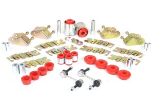 Reduces flex under load for sharper, predictable control; a complete, premium upgrade. Includes: Front Lower Control Arm Inner Bushings, Camber Caster Adjustable Kit, Radius Arm Lower Bushings, Shock to Control Arm Bushings & Front Sway Bar Link Kit.