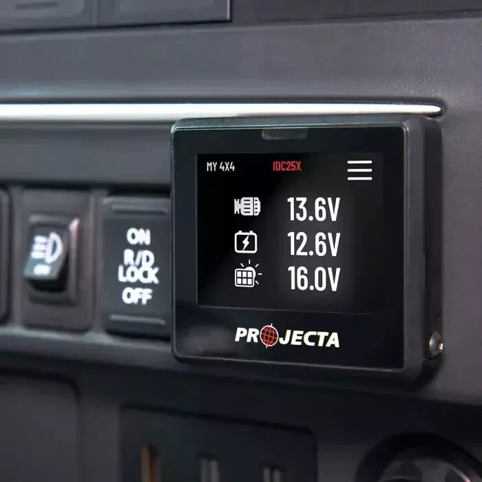 Introducing the long-awaited… INTELLI-IQ SMART DISPLAY IQD2. The incredible functionality of this display will revolutionise the way Projecta monitors, controls and updates the IDC25X DC-DC Charger – as well as just about any component of a vehicle, camper trailer or caravan setup. The Intelli-IQ Smart Display s the brain of the entire Projecta Internet of Things (IOT) system. It is the link between connected products and is a completely different way of controlling devices. The IOT system can be considered as a portable smart home system, which gives the user total control over the auxiliary 12V system.