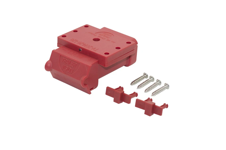 Trailer Vision’s red cover for Anderson 120a connectors has multiple attachment points for easy surface mounting to towbars, brackets for horizontal mounting, or walls and panels for vertical mounting. This model also features a Red LED power sensor.