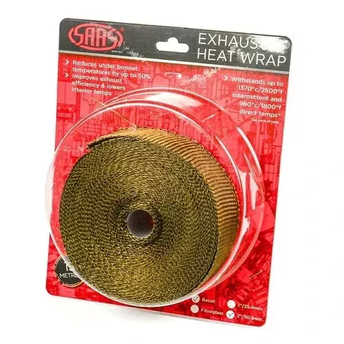 Our SAAS exhaust wrap is a must have for your vehicle’s exhaust system. Designed to retain heat within the exhaust pipes, exhaust wrap helps improve the efficiency of the exhaust by decreasing density, and increasing the flow of exhaust gases. Under-bonnet temperatures can be reduced when using exhaust wrap. Your vehicle’s electronics, air-intake systems, dash components and interior also benefit from exhaust wrap, as it reduces their heat absorption