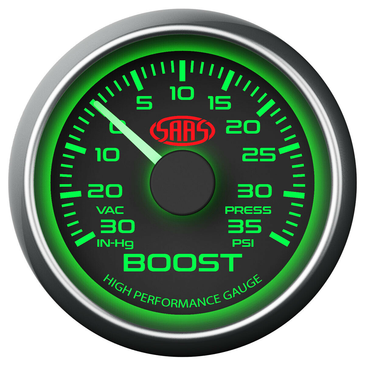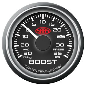 SAAS SG-TB52B1 BOOST GAUGE 30INHG-35PSI 52MM BLACK MUSCLE SERIES
