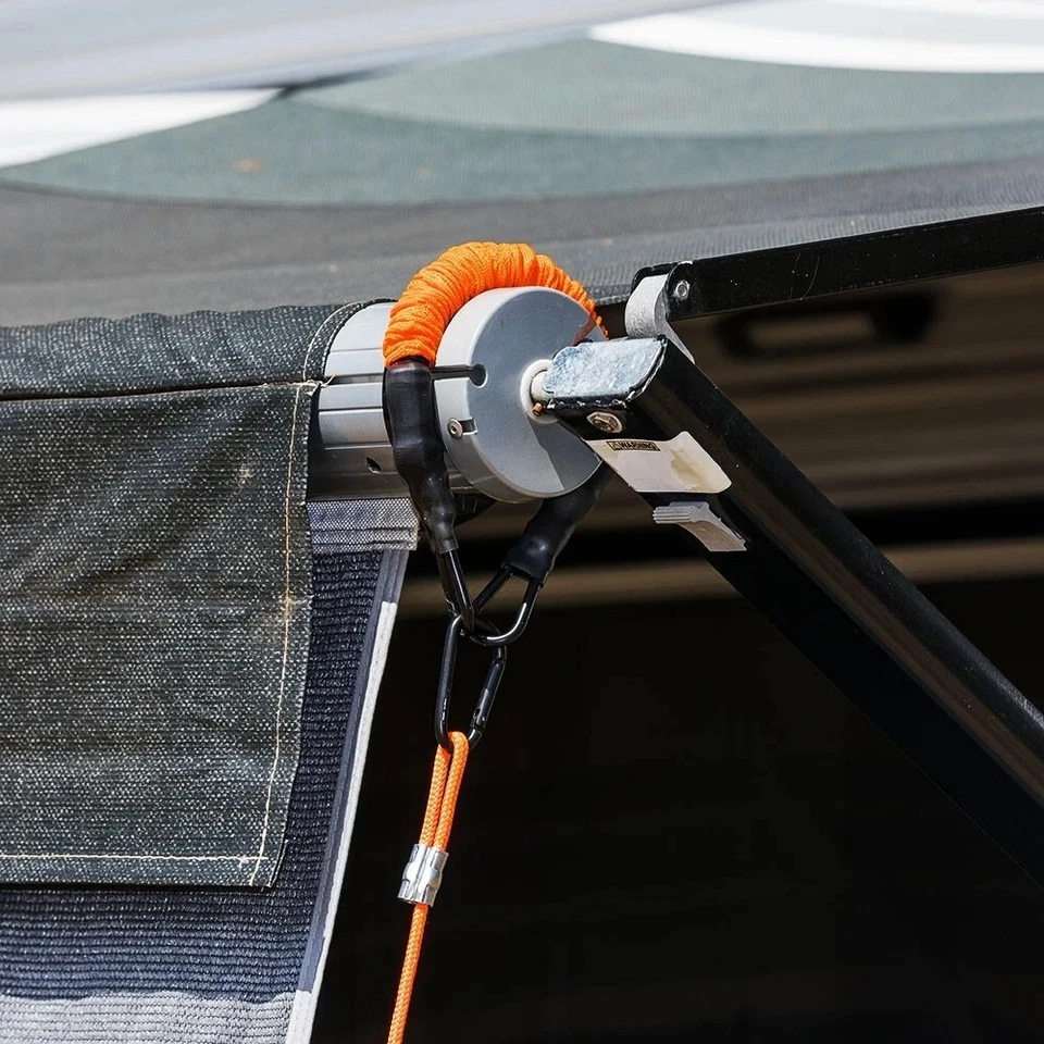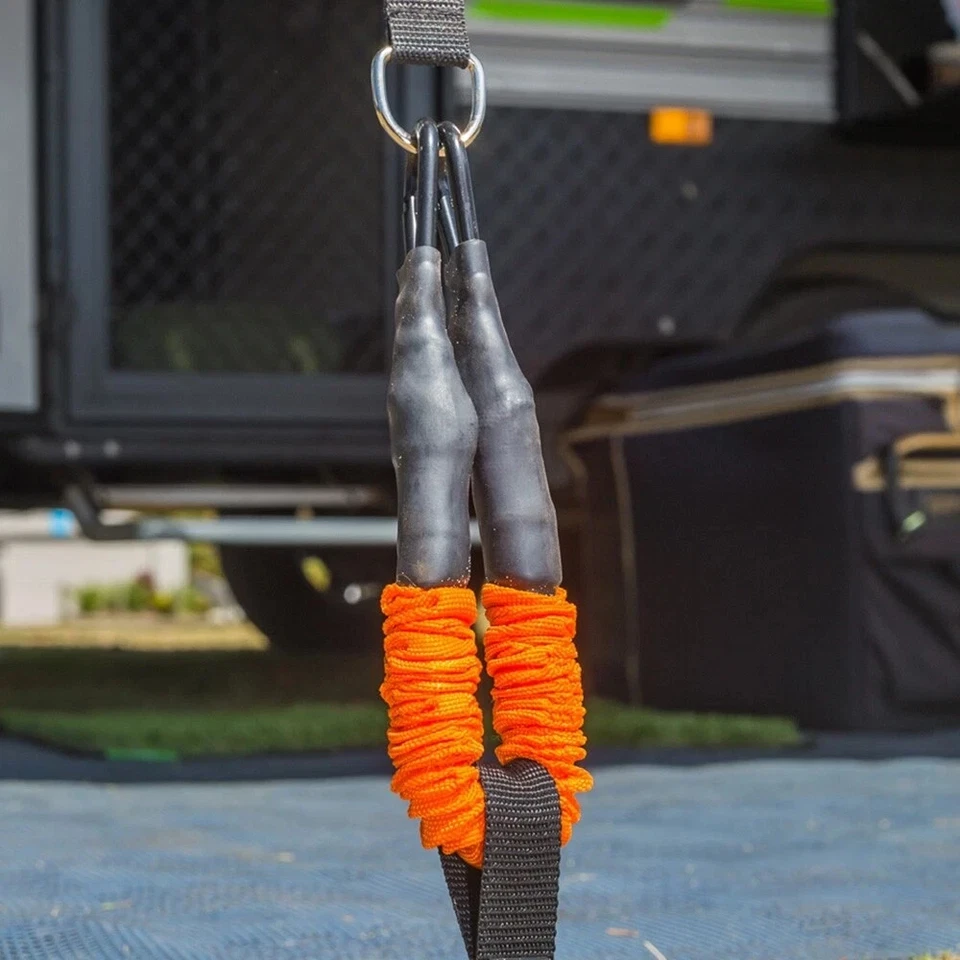 From awnings and large tents to caravans and camper trailers, this soft spring is designed to absorb strong winds and thus allow both movement and the grounding of pegs. For versatility, remove the spring loop and use with various styles of pegs, while two robust clips on either end enable alteration to different configurations.