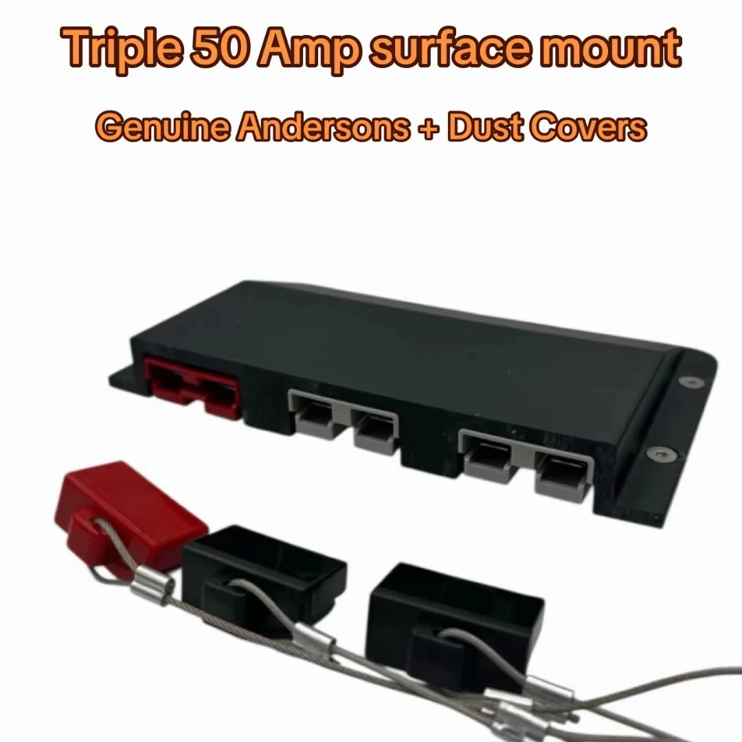 Triple Anderson Plug Surface Mount 50Amp Mounting Bracket Panel Grey/Red plugs with Dust Caps