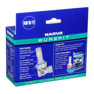 Narva H8 / H9 / H11 LED Globes Surefit GEN II Pair 12V / 24V pair provide the latest in LED globe technology and innovation. Surefit GEN II provide an even better exact fit headlight upgrade than previous models making them an ideal upgrade for your halogen H8 / H9 / H11 replacement globes and bulbs. With an impressive output of up to 5000 lumens, Narva Surefit GEN II globes are up to 200% brighter than standard globes and project a crisp white light output.