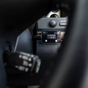 The evcX is easily installed by the at-home mechanic in less than 15 minutes; simply connect in-line between the factory plug and throttle pedal assembly. The evcX driver interface can be placed on the dash or console of the vehicle.