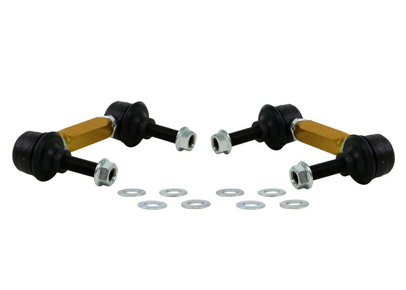 Not many enthusiasts are aware that OE and more importantly aftermarket sway bar effectiveness can be hindered by worn or inadequate mounts, drop links and lateral stoppers. Whiteline adjustable sway bar links are engineered to be up to the task with top spec, light weight componentry combined with a window of adjustability, eliminating sway bar preload on installation but most importantly ensuring the maximum output of the sway bar for improved grip and better handling.